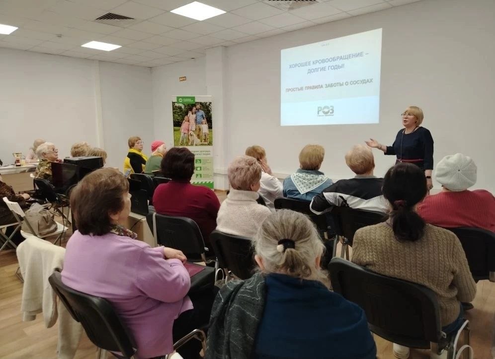 Дмитрий Евгеньевич очень доступно и с душой рассказал о простых, но важных правилах, которые помогают сохранить сосуды здоровыми. Было много вопросов, и на каждый гость получил исчерпывающий и понятный ответ. Атмосфера встречи получилась по-настоящему дружеской: участники не только слушали, но и активно общались, делились своими мыслями.