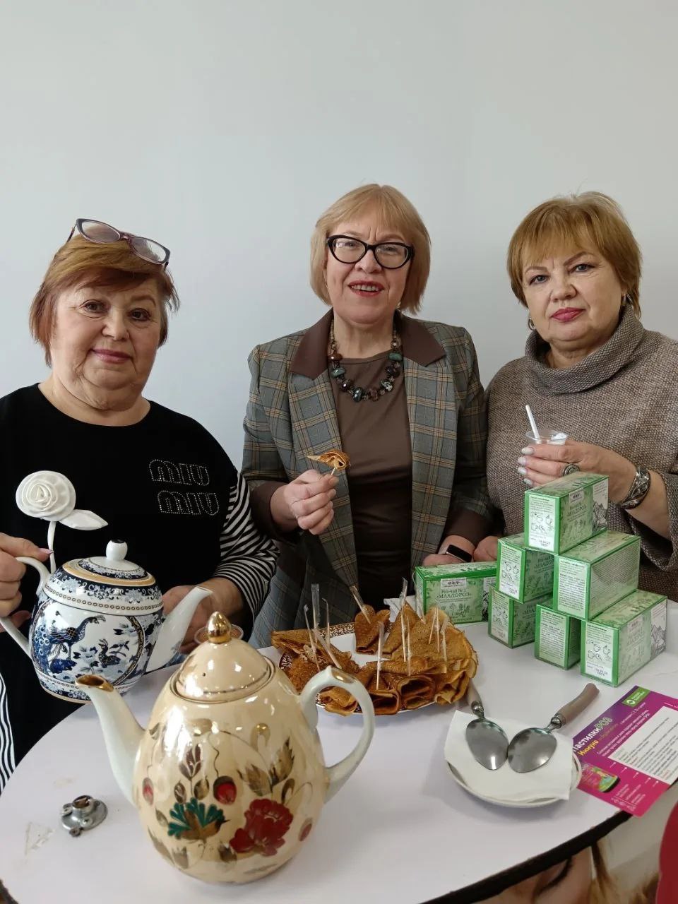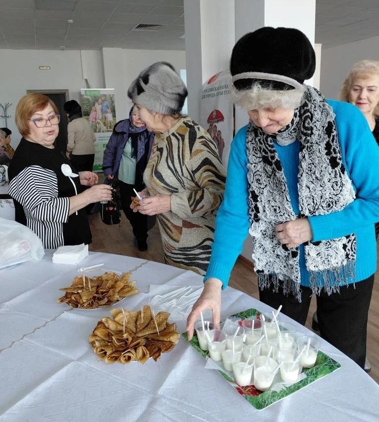 Наша встреча совпала с последним днём Масленицы, поэтому мы постарались создать по-настоящему праздничную атмосферу. Гостей ждала вкусная дегустация: традиционные блины с полезным кефиром из "Эвитона", чай "Младороз" с Пастилками Роз Актив.