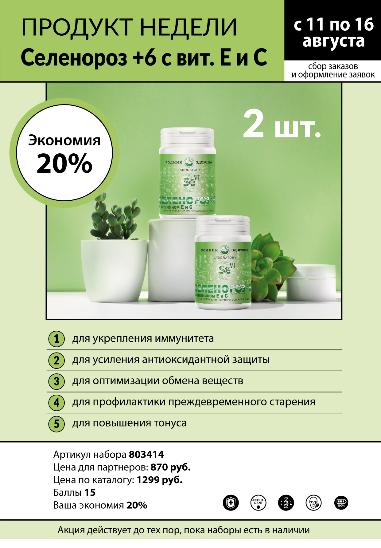 • Акция «Продукт недели» - «Селенороз+6 с вит. Е и С» 2 шт.