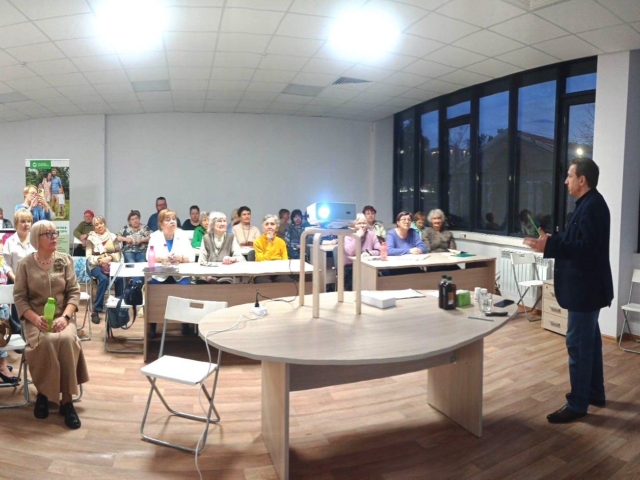 Он выступил с актуальной темой «Как подготовить организм к зиме». Более 40 человек внимательно и с большим интересом слушали доклад.