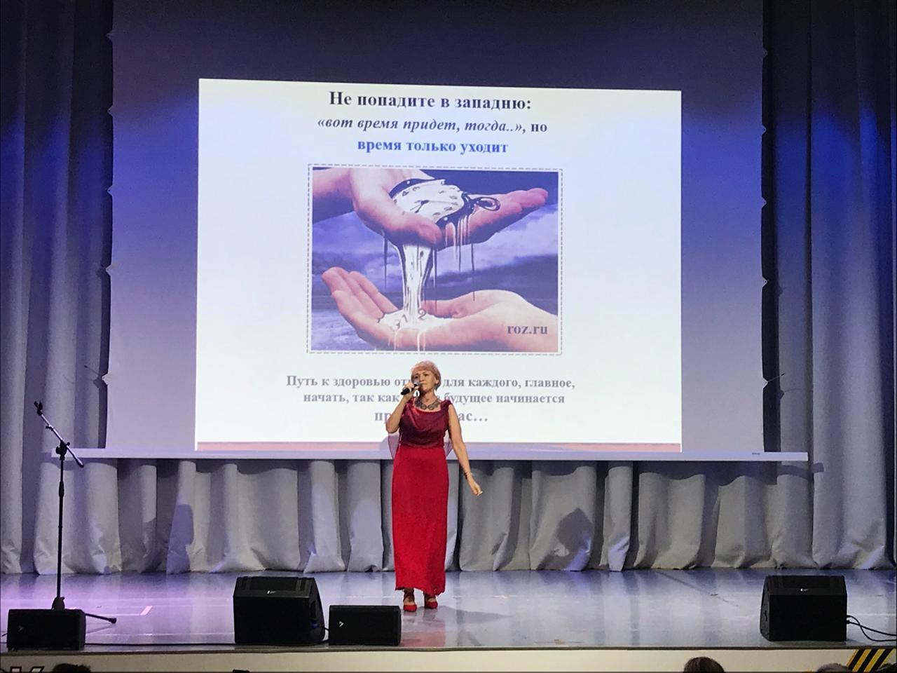 С нетерпением я ждала 13 июля, дня «Фестиваля здоровья», когда снова увижу и услышу нашу удивительную и прекрасную Нину Георгиевну Байкулову. Встреча с ней – это всегда праздник, а еще много очень важной и нужной для нас информации. Нина Георгиевна – настоящий мотиватор, который своим собственным примером показывает нам, какой нужно вести образ жизни, как любить себя и своих близких, чтобы оставаться активными, бодрыми и здоровыми на долгие годы. И вот мы пришли на лекцию, чтобы получить знания, потому что, как говорит Нина Георгиевна, нельзя полюбить то, чего не знаешь. Она "разложила по полочкам" действия, которые должны стать обязательными как дыхание, чтобы сделать мечту о здоровье реальностью. И как будто для меня лично на первой "полочке" – движение, в любом виде. А еще очень важный момент – способ уходить от стресса путем смены образов. Это я взяла на вооружение.