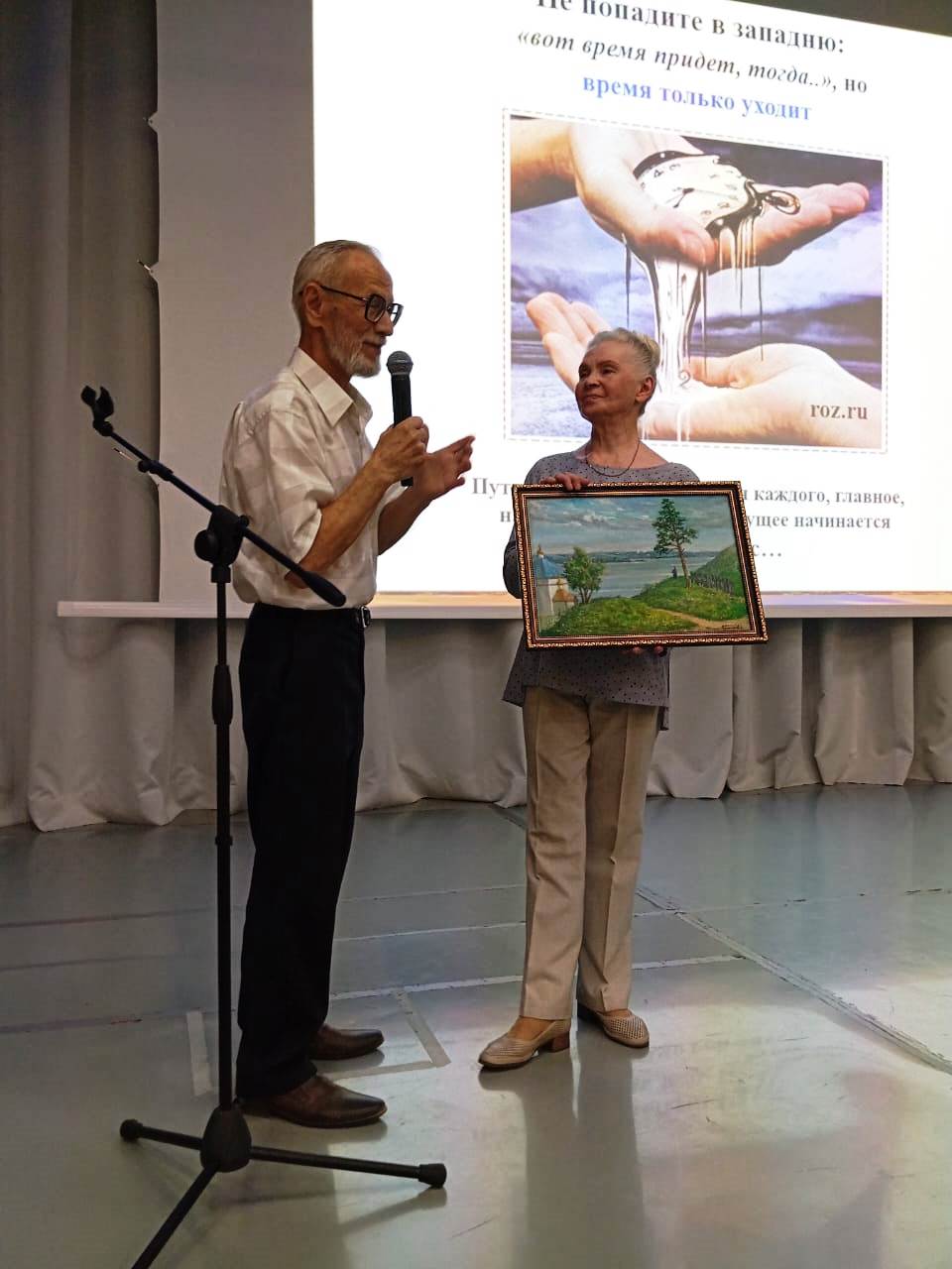 Сидел в зале. Слушал и волновался: после лекции должен был вручить подарок Нине Георгиевне от всех родниковцев. Но вскоре меня захватила тема и то, как Нина Георгиевна спокойным, четким и ясным голосом передает нам тему. И ее спокойствие постепенно передалось и мне. Когда после лекции я подошел к микрофону для вручения подарка, Нина Георгиевна посмотрела на меня с улыбкой и ободряюще, и у меня отпали последние сомнения. Как Нина Георгиевна понимает людей: один взгляд, улыбка – и все получилось. Я восхищен. Вся программа окрасилась для меня в розовый цвет. Все прошло замечательно. Большое спасибо всем, кто участвовал в организации и проведении этого праздника! Особенно Галине Мансуровне. Она приняла участие в подготовке моего выступления, а именно посоветовала включить юморные нотки. Всем-всем крепкого здоровья!