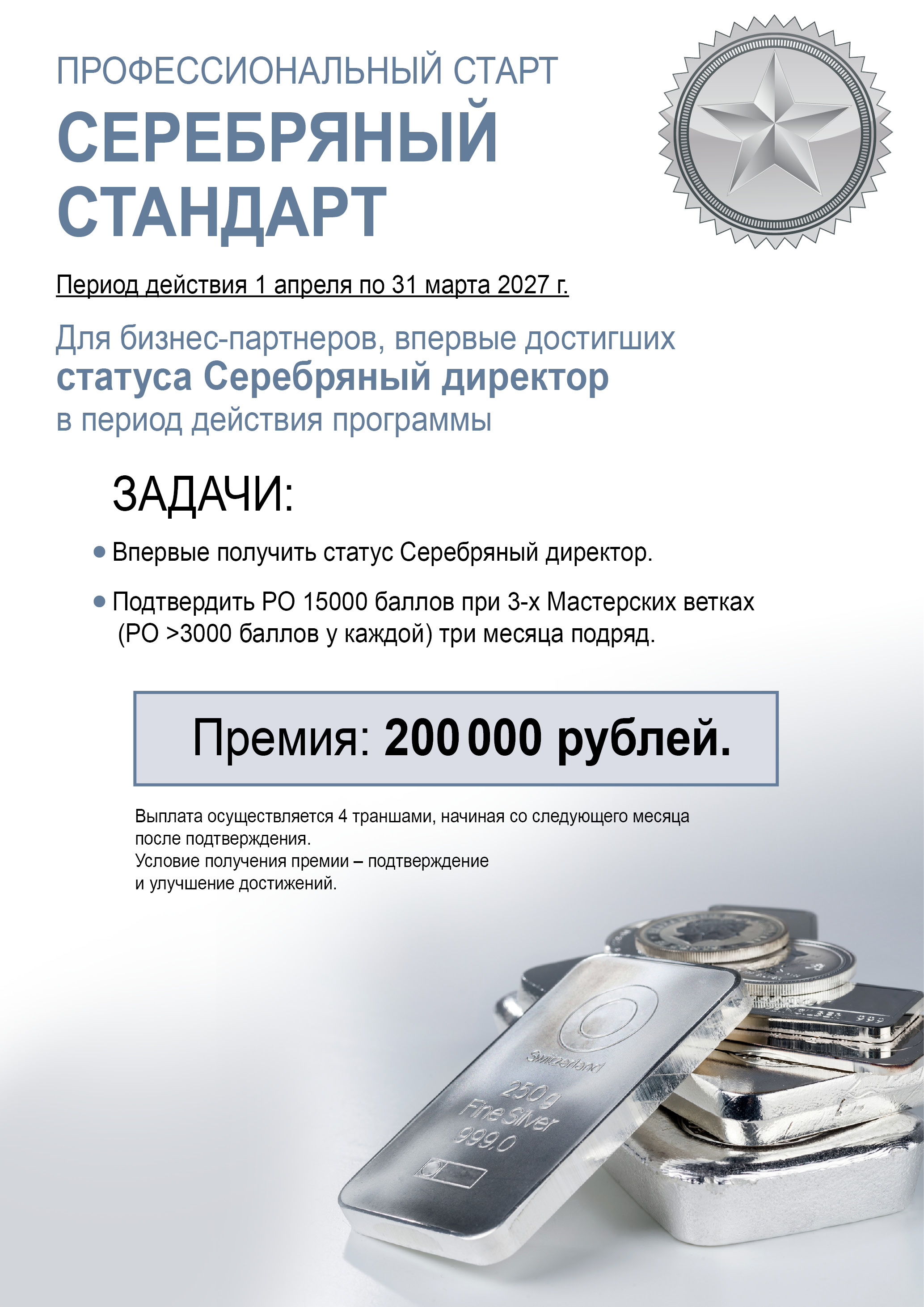 Для бизнес-партнеров, впервые достигших статуса Серебряный директор в период действия программы.