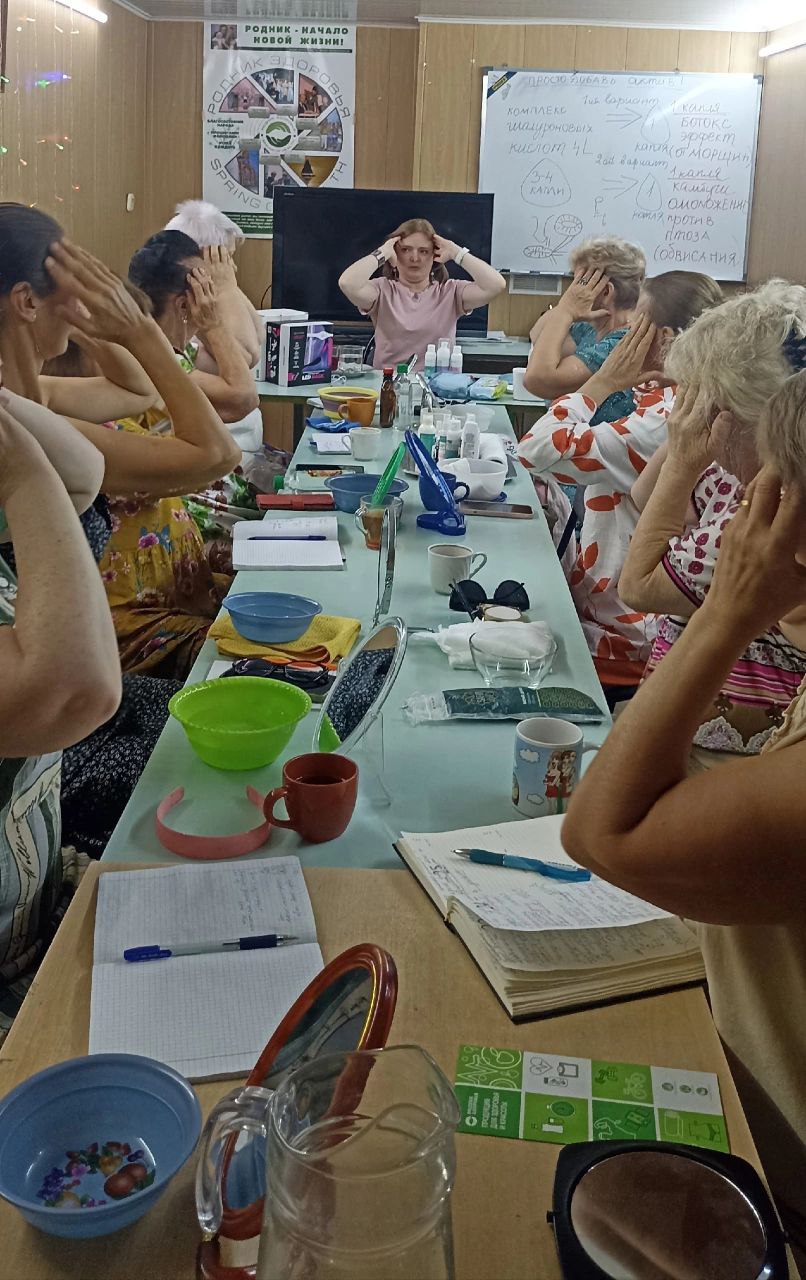 26 числа она провела нам превосходный мастер - класс «Секретные приёмы омоложения», показала, как правильно держать осанку. Поработали с мышцами лица, поговорили о глазах, выполнили гимнастику для глаз.